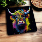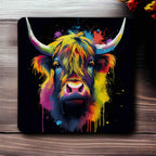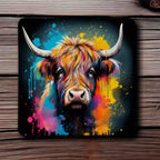 Colourful Highland Cow Vibrant Splash Art Design - Pack of 4 Neoprene Coasters - Laser Design Creations